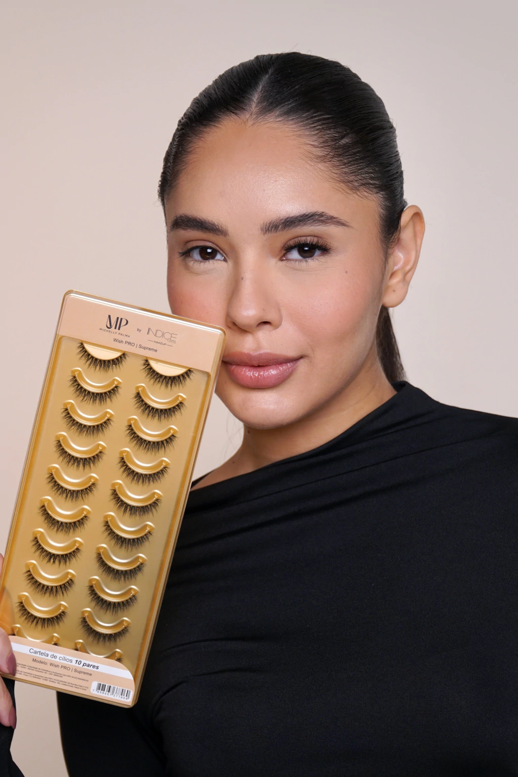 Eu criei o Supreme para quem ama impacto com leveza. Os fios são mais volumosos e estrategicamente espaçados, criando uma textura moderna e marcante que dá presença ao olhar sem “fechar” a pálpebra. A densidade é controlada: você tem corpo e definição, mas com respiros entre os feixes para manter um ar arejado. O alongamento é suave nas extremidades, o suficiente para projetar o olhar e deixá-lo mais expressivo sem transformar seu formato natural. A faixa é fina, flexível e assenta rente à raiz, garantindo conforto e acabamento limpo — textura que aparece, base que desaparece. É o par perfeito para quem quer mais atitude que o Radiance, com um desenho em feixes que fotografa lindamente e segue leve ao vivo.